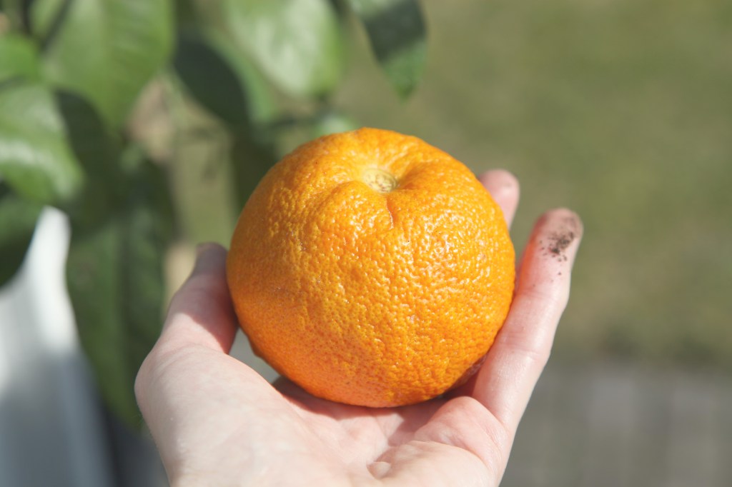 Jedno drzewko udało się zapylić – pomarańczę. Cytryna się nie zapyliła, co może wynikać z tego, że miała tylko trzy kwiatki. Mamy nadzieję, że w tym roku wyda ich więcej i uda nam się ją zapylić z sukcesem.
