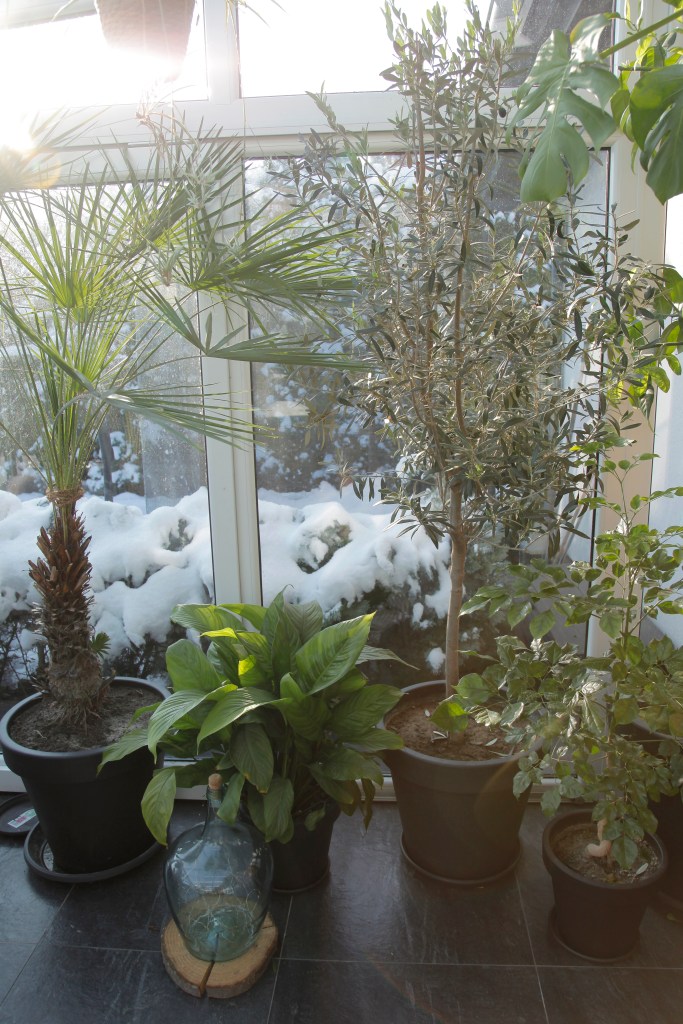 Rośliny mieszkają u „dziadków”, Leszno 2017 W międzyczasie walczyliśmy też z tarcznikami i przędziorkami. Gdy w końcu osiedliśmy w jednym miejscu, nasze drzewka zamieszkały na tarasie, a na zimę wywoziliśmy je do biura. Rok temu zbudowaliśmy ogród zimowy i teraz mają w końcu miejsce na stałe.